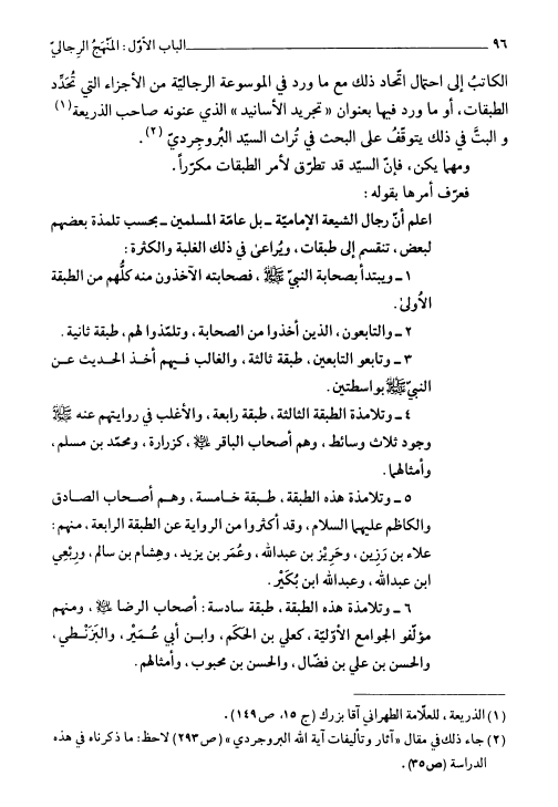 نام کتاب : المنهج الرجالي، والعمل الرائد في الموسوعة الرجالية لسيد الطائفة آية الله العظمى البروجردي نویسنده : السيد محمد رضا الحسيني الجلالي جلد : 1 صفحه : 96