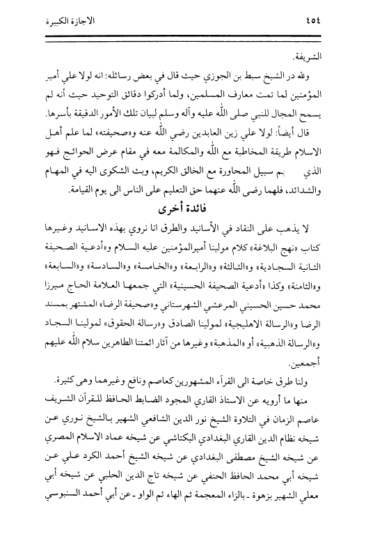 الإجازة الكبيرة، أو الطريق والمحجة لثمرة المهجة