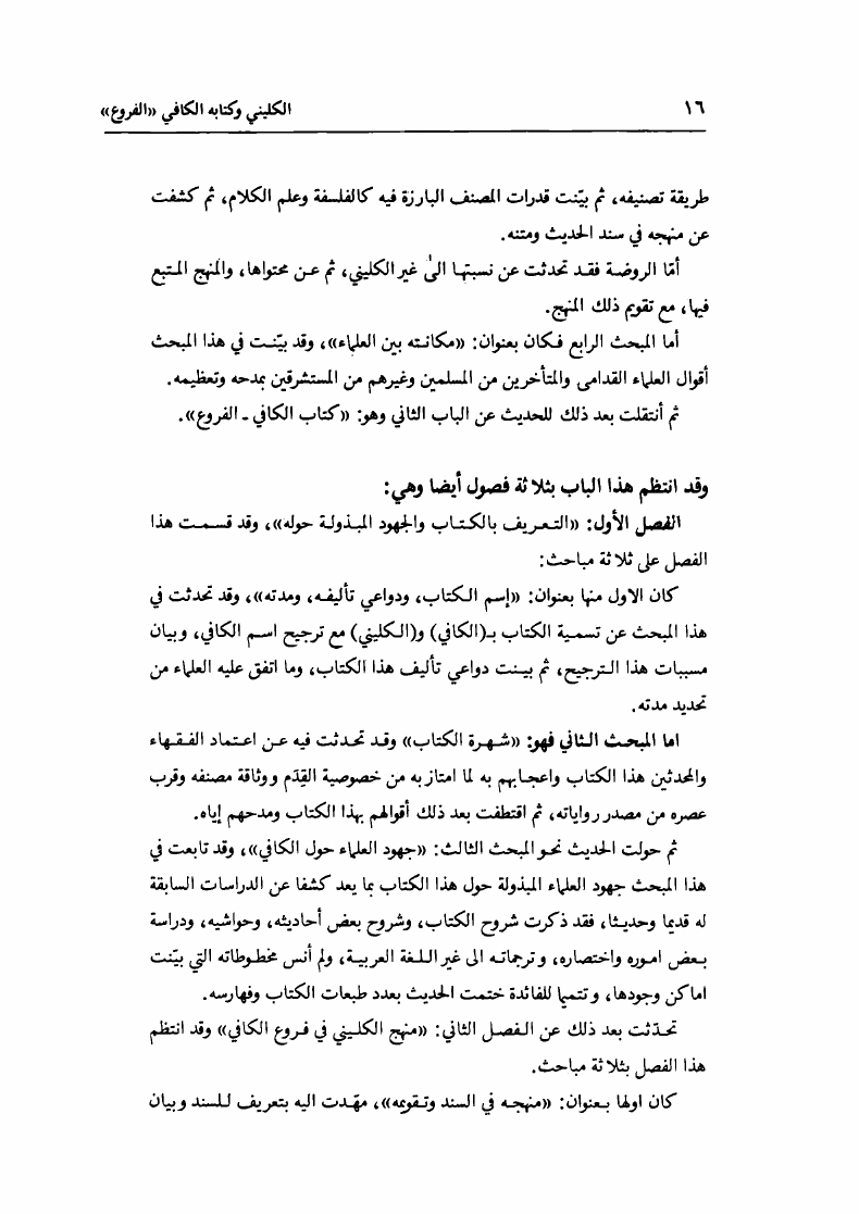 الشيخ الكليني البغدادي، وكتابه الكافي، الفروع