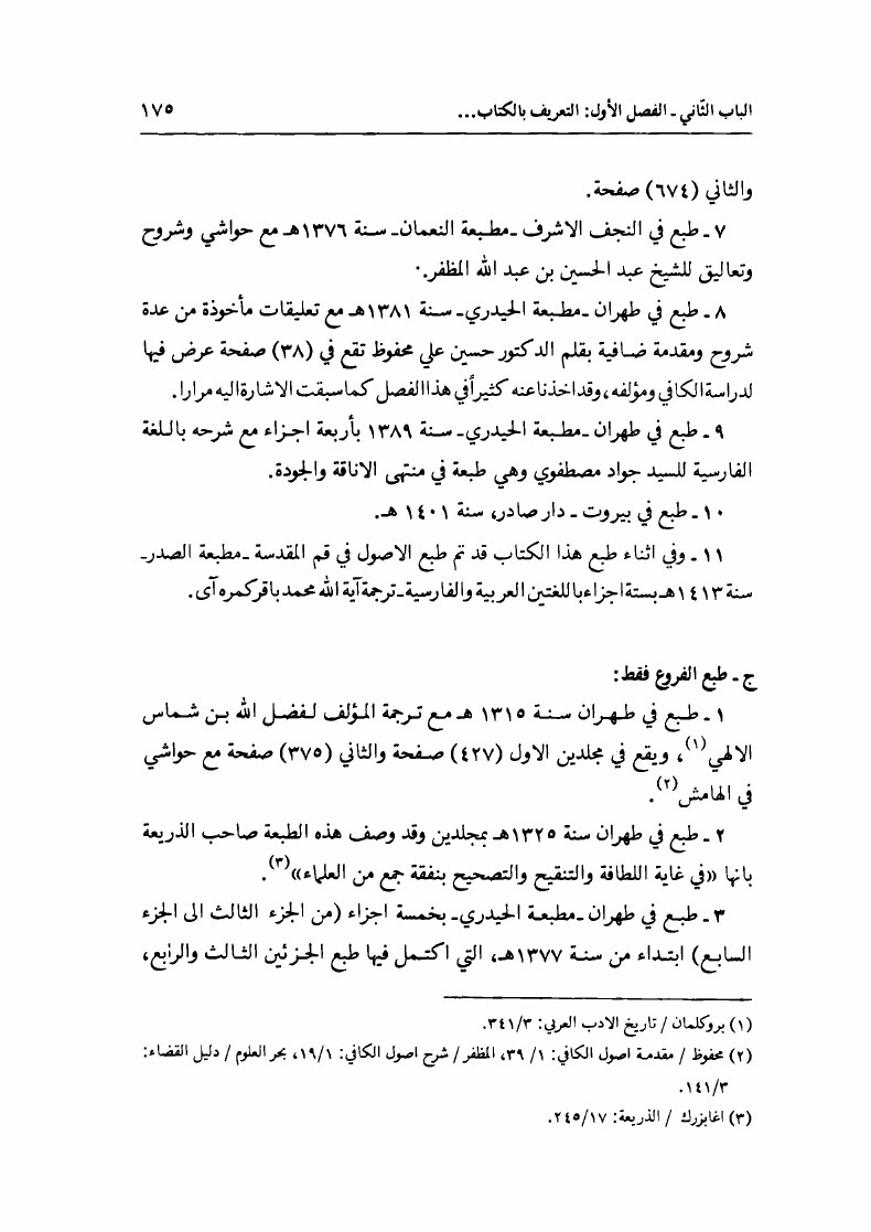 الشيخ الكليني البغدادي، وكتابه الكافي، الفروع