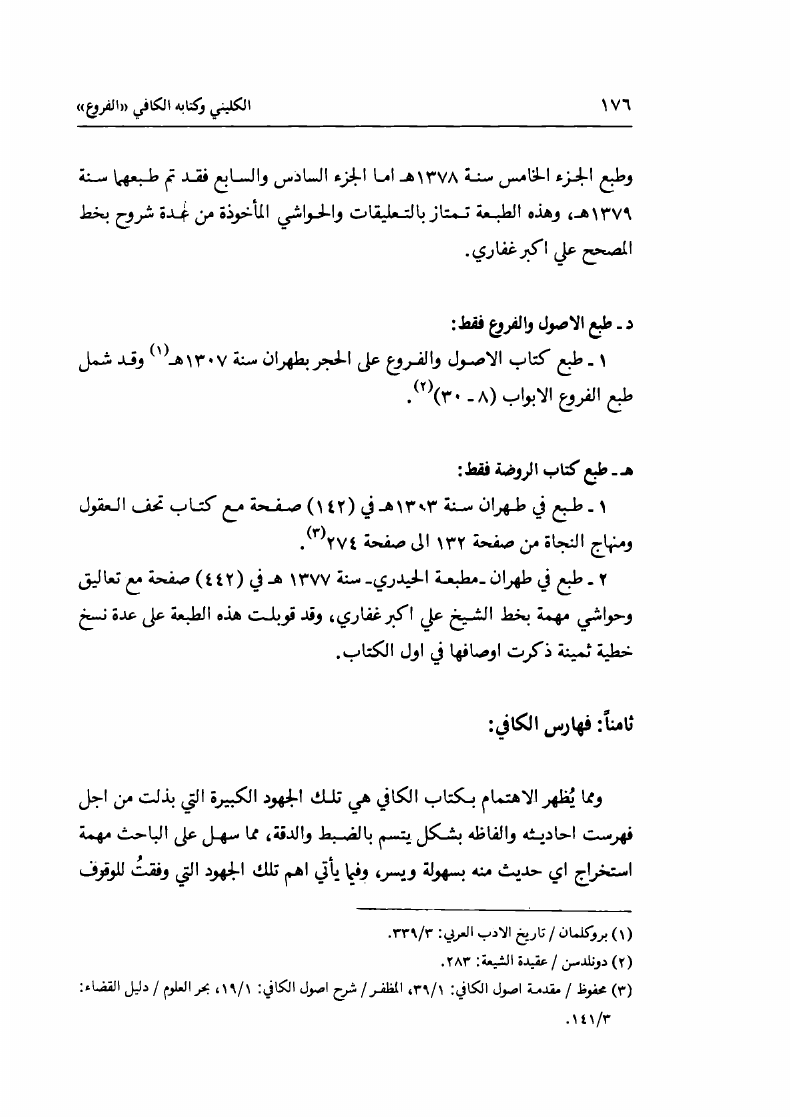 الشيخ الكليني البغدادي، وكتابه الكافي، الفروع