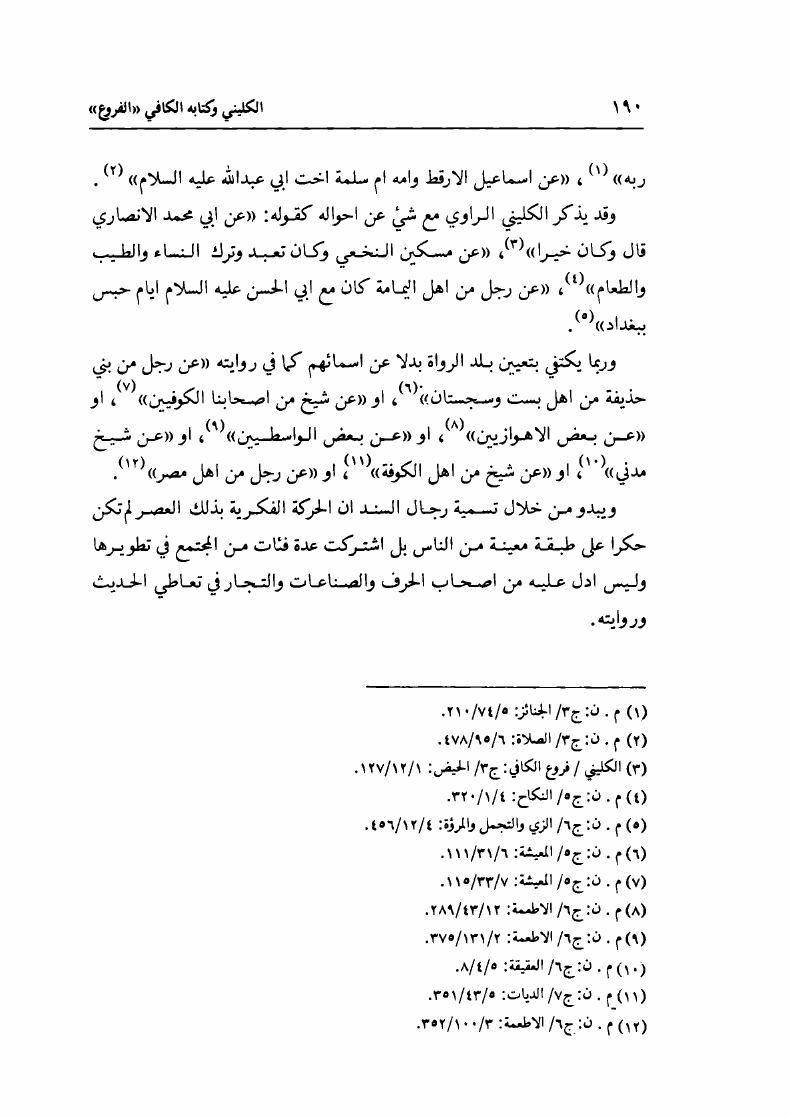 الشيخ الكليني البغدادي، وكتابه الكافي، الفروع