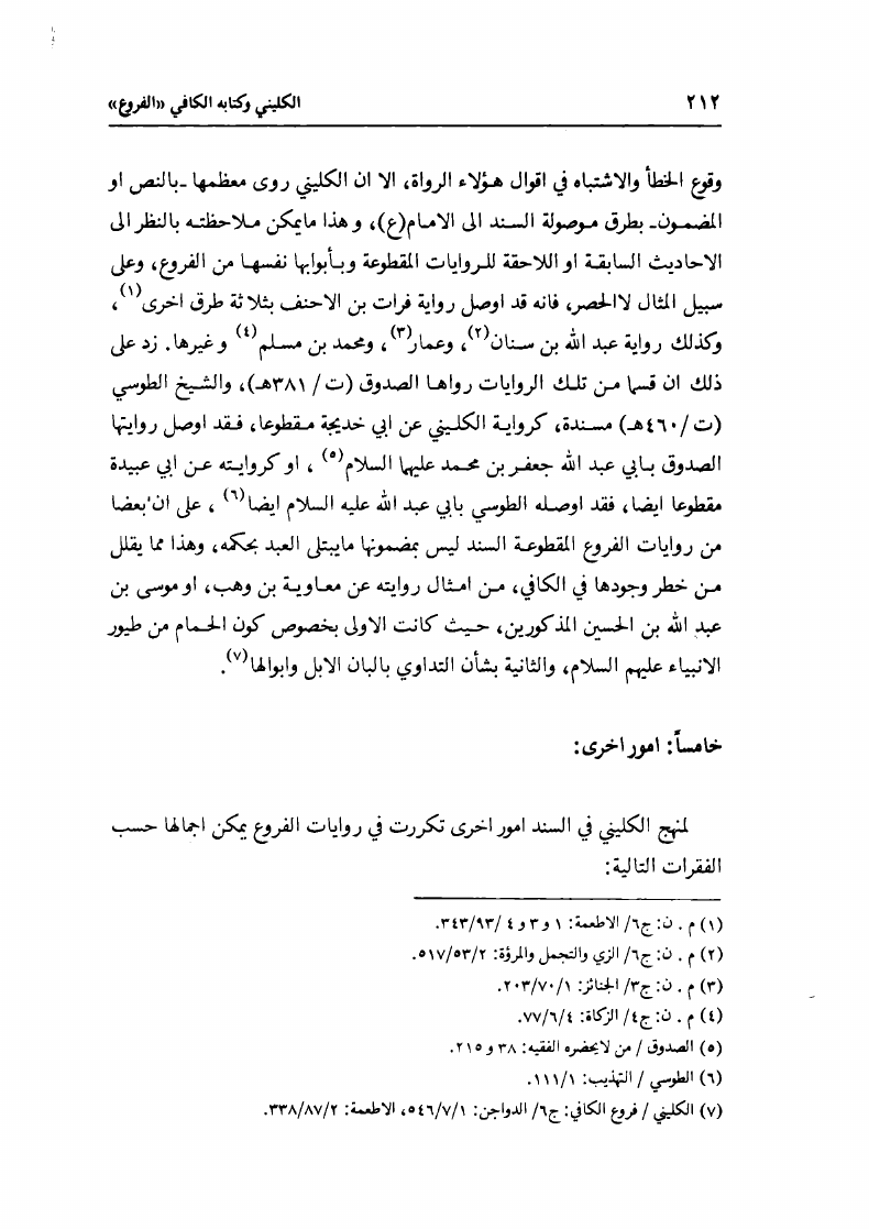الشيخ الكليني البغدادي، وكتابه الكافي، الفروع