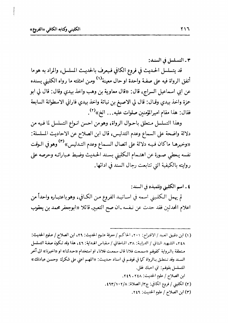 الشيخ الكليني البغدادي، وكتابه الكافي، الفروع