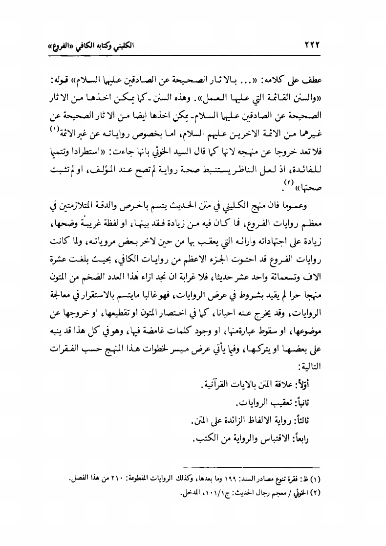 الشيخ الكليني البغدادي، وكتابه الكافي، الفروع
