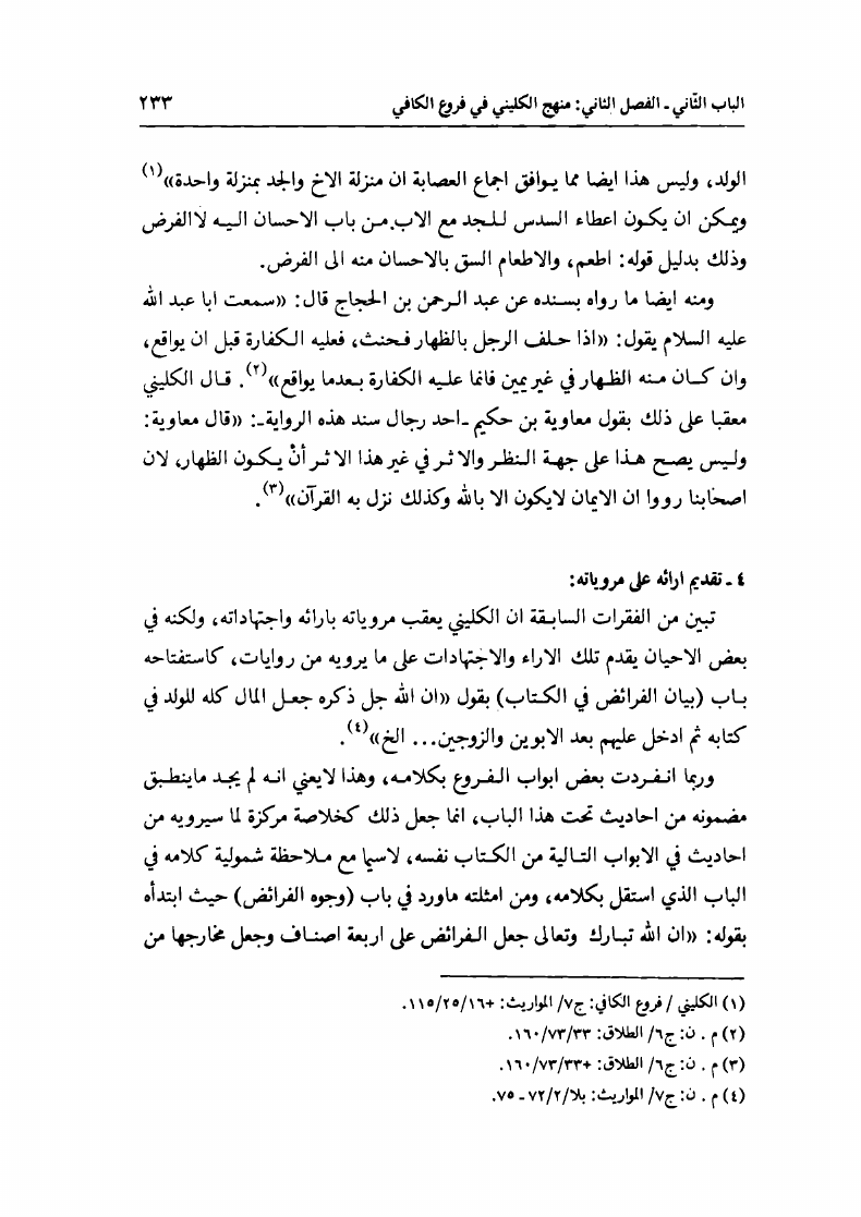 الشيخ الكليني البغدادي، وكتابه الكافي، الفروع