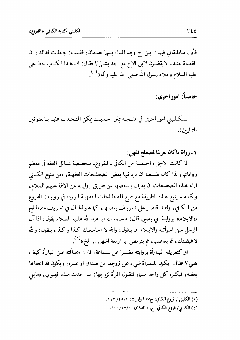 الشيخ الكليني البغدادي، وكتابه الكافي، الفروع