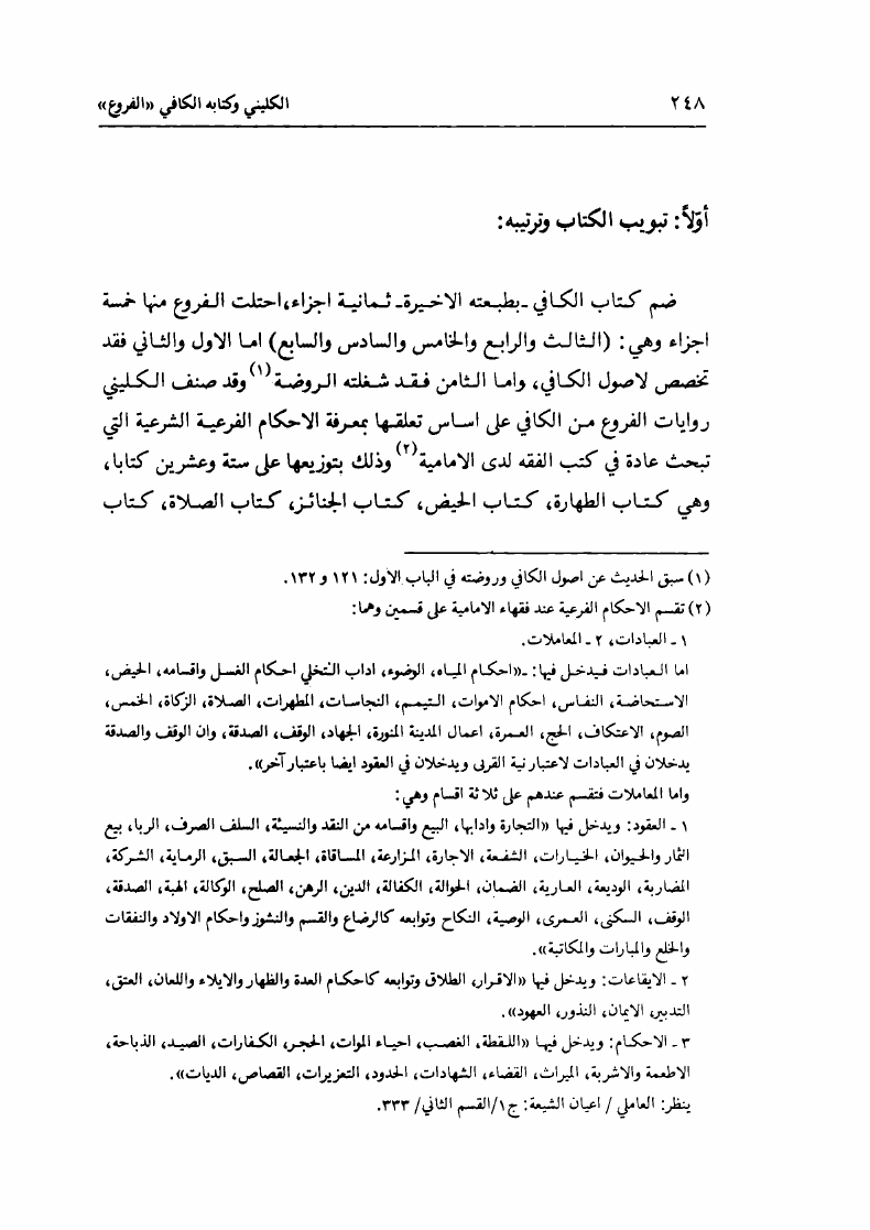 الشيخ الكليني البغدادي، وكتابه الكافي، الفروع