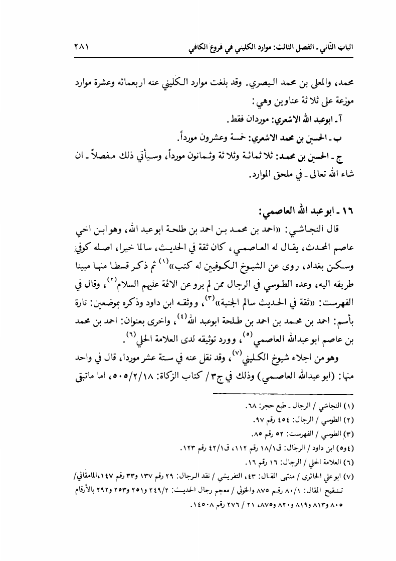 الشيخ الكليني البغدادي، وكتابه الكافي، الفروع