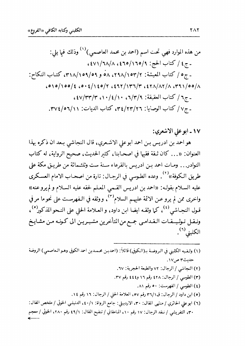 الشيخ الكليني البغدادي، وكتابه الكافي، الفروع