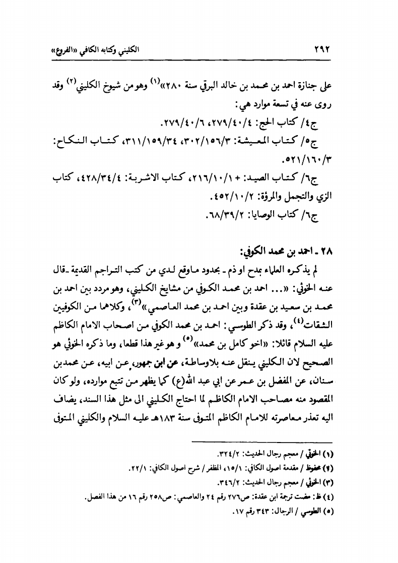 الشيخ الكليني البغدادي، وكتابه الكافي، الفروع
