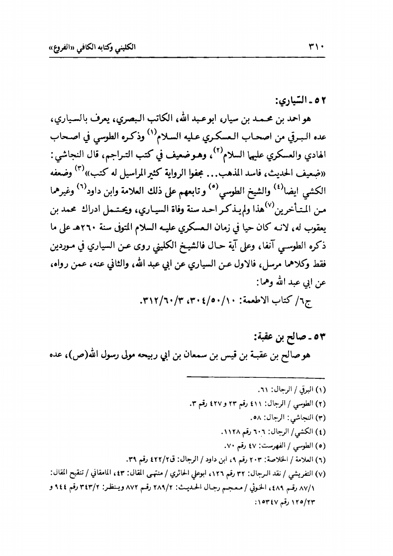 الشيخ الكليني البغدادي، وكتابه الكافي، الفروع