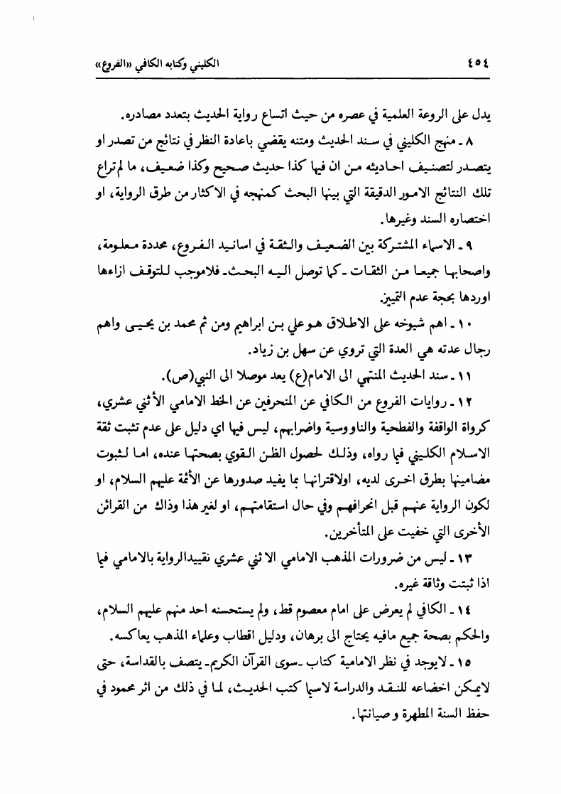 الشيخ الكليني البغدادي، وكتابه الكافي، الفروع