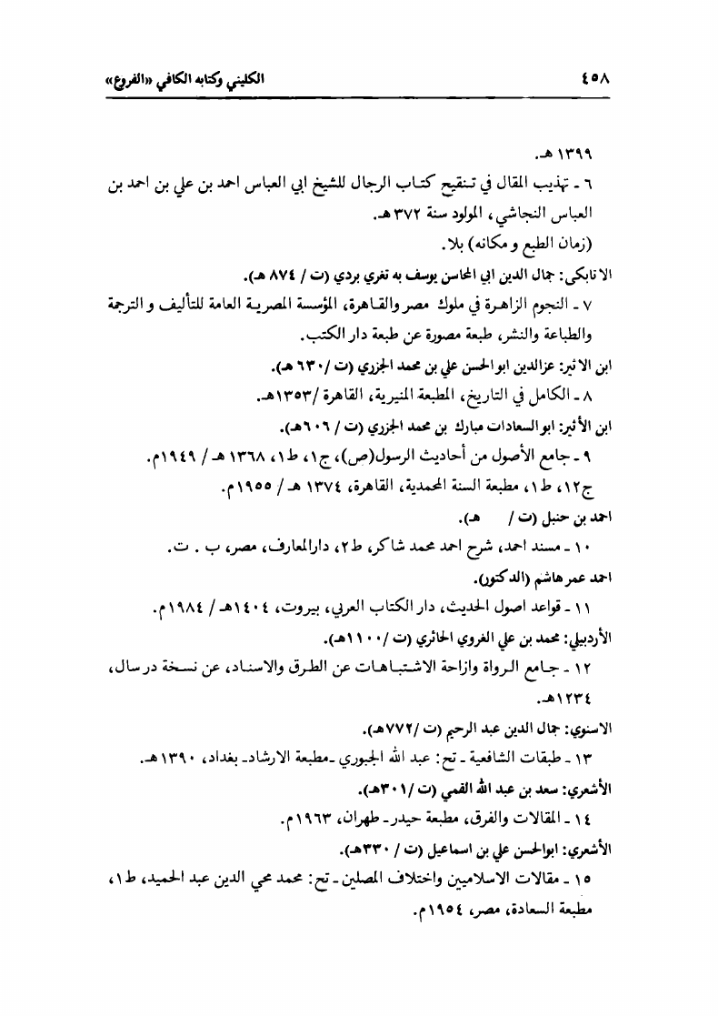الشيخ الكليني البغدادي، وكتابه الكافي، الفروع