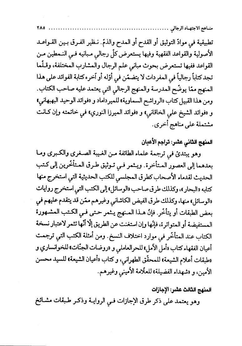 نام کتاب : الإجتهاد والتقليد في علم الرجال، وأثره في التراث العقائدي، دراسة نقدية لمدرسة النجاشي نویسنده : الشيخ محمد السند البحراني جلد : 1 صفحه : 285