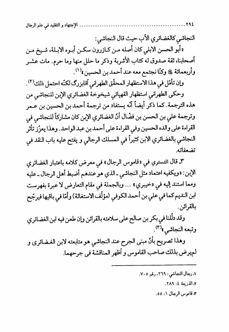 نام کتاب : الإجتهاد والتقليد في علم الرجال، وأثره في التراث العقائدي، دراسة نقدية لمدرسة النجاشي نویسنده : الشيخ محمد السند البحراني جلد : 1 صفحه : 294
