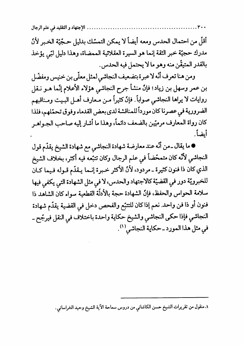 نام کتاب : الإجتهاد والتقليد في علم الرجال، وأثره في التراث العقائدي، دراسة نقدية لمدرسة النجاشي نویسنده : الشيخ محمد السند البحراني جلد : 1 صفحه : 300