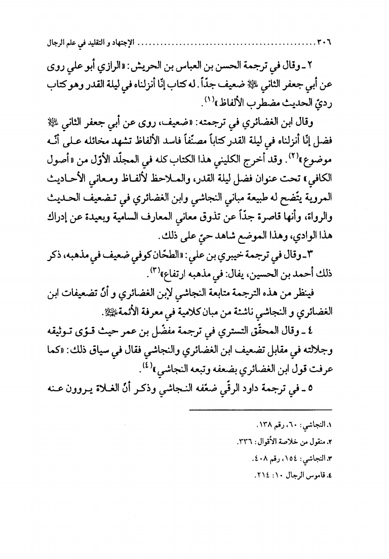 نام کتاب : الإجتهاد والتقليد في علم الرجال، وأثره في التراث العقائدي، دراسة نقدية لمدرسة النجاشي نویسنده : الشيخ محمد السند البحراني جلد : 1 صفحه : 306