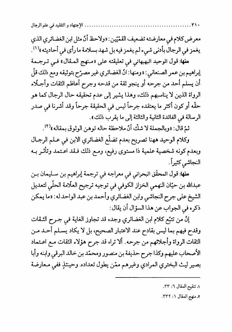 نام کتاب : الإجتهاد والتقليد في علم الرجال، وأثره في التراث العقائدي، دراسة نقدية لمدرسة النجاشي نویسنده : الشيخ محمد السند البحراني جلد : 1 صفحه : 310