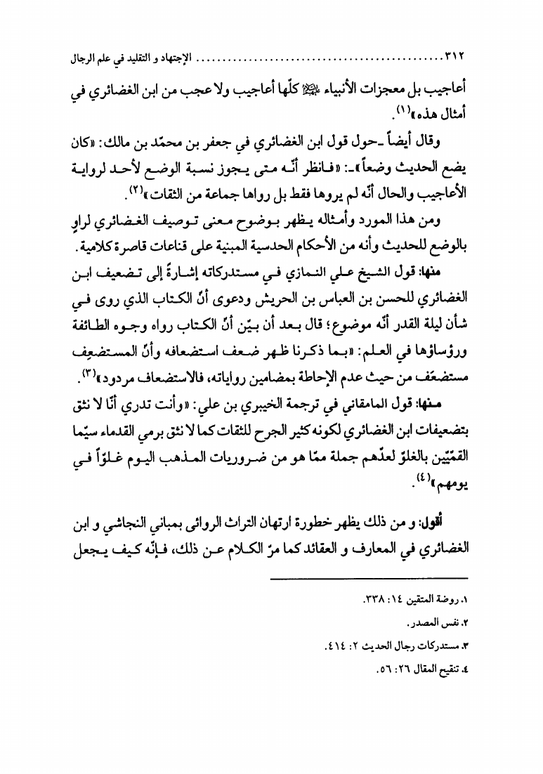 نام کتاب : الإجتهاد والتقليد في علم الرجال، وأثره في التراث العقائدي، دراسة نقدية لمدرسة النجاشي نویسنده : الشيخ محمد السند البحراني جلد : 1 صفحه : 312