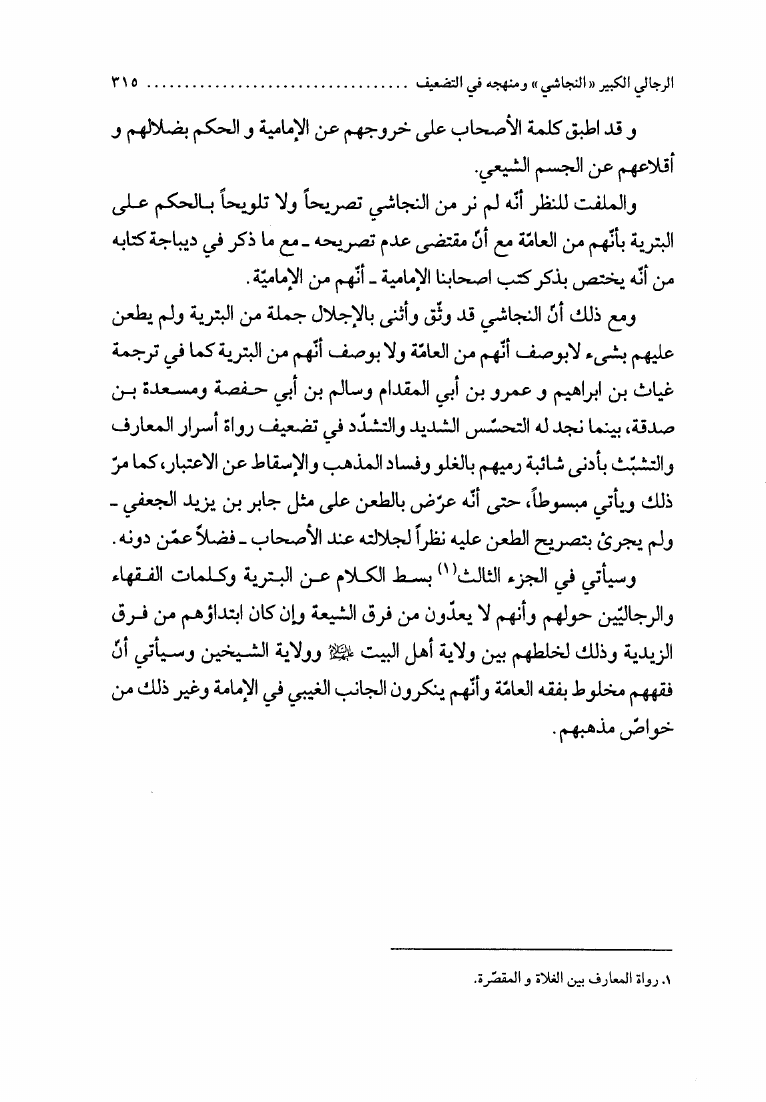 نام کتاب : الإجتهاد والتقليد في علم الرجال، وأثره في التراث العقائدي، دراسة نقدية لمدرسة النجاشي نویسنده : الشيخ محمد السند البحراني جلد : 1 صفحه : 315