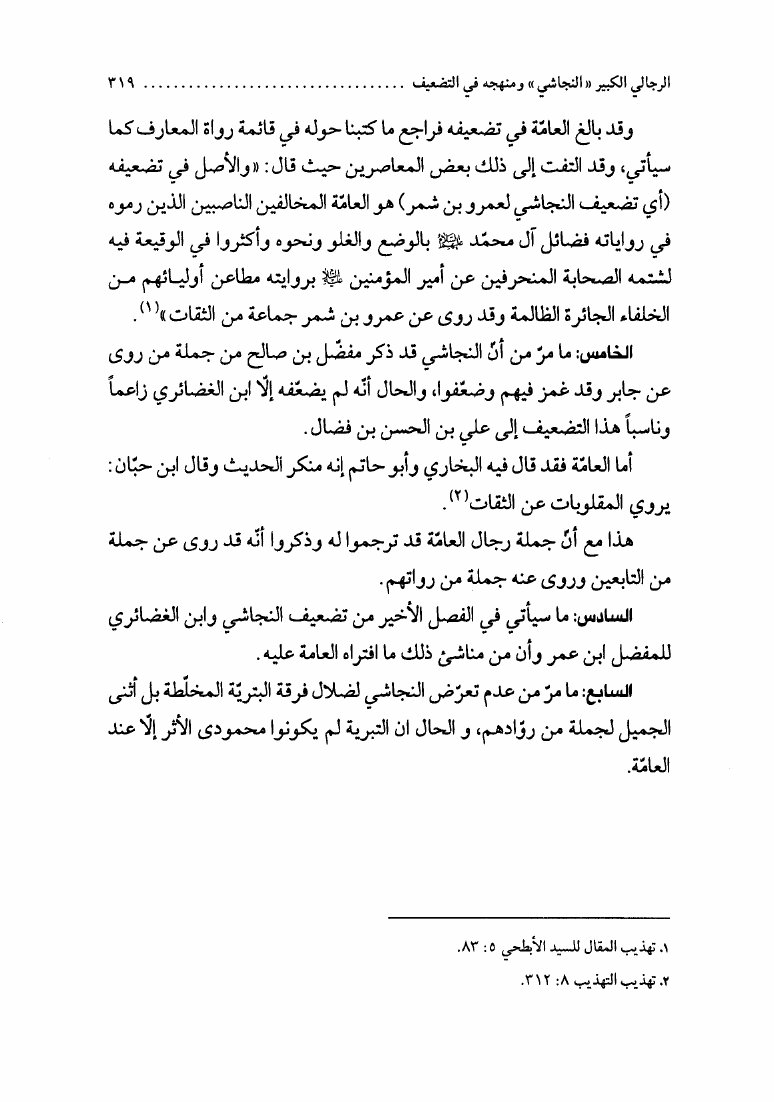 نام کتاب : الإجتهاد والتقليد في علم الرجال، وأثره في التراث العقائدي، دراسة نقدية لمدرسة النجاشي نویسنده : الشيخ محمد السند البحراني جلد : 1 صفحه : 319