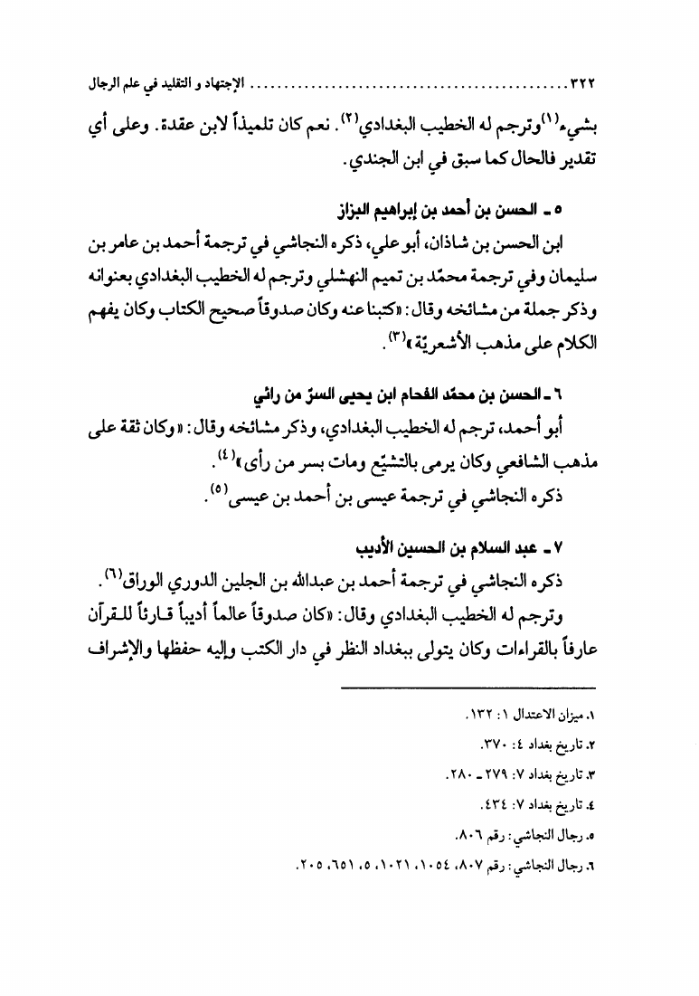 نام کتاب : الإجتهاد والتقليد في علم الرجال، وأثره في التراث العقائدي، دراسة نقدية لمدرسة النجاشي نویسنده : الشيخ محمد السند البحراني جلد : 1 صفحه : 322