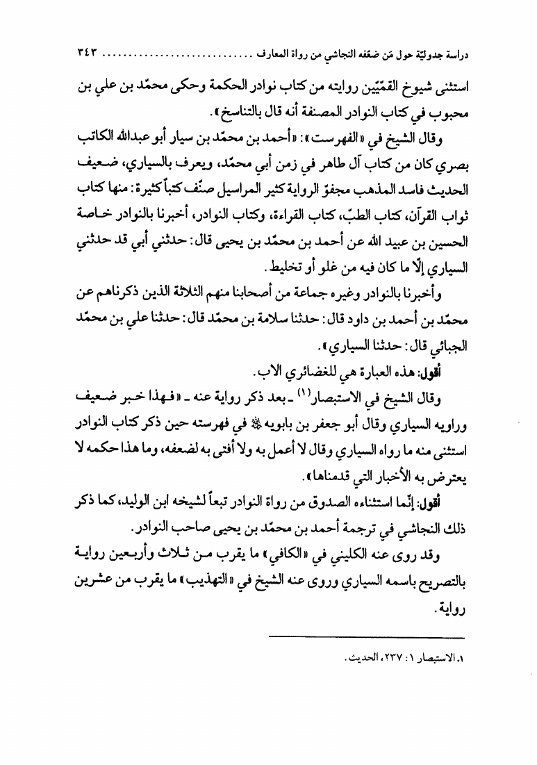 نام کتاب : الإجتهاد والتقليد في علم الرجال، وأثره في التراث العقائدي، دراسة نقدية لمدرسة النجاشي نویسنده : الشيخ محمد السند البحراني جلد : 1 صفحه : 343