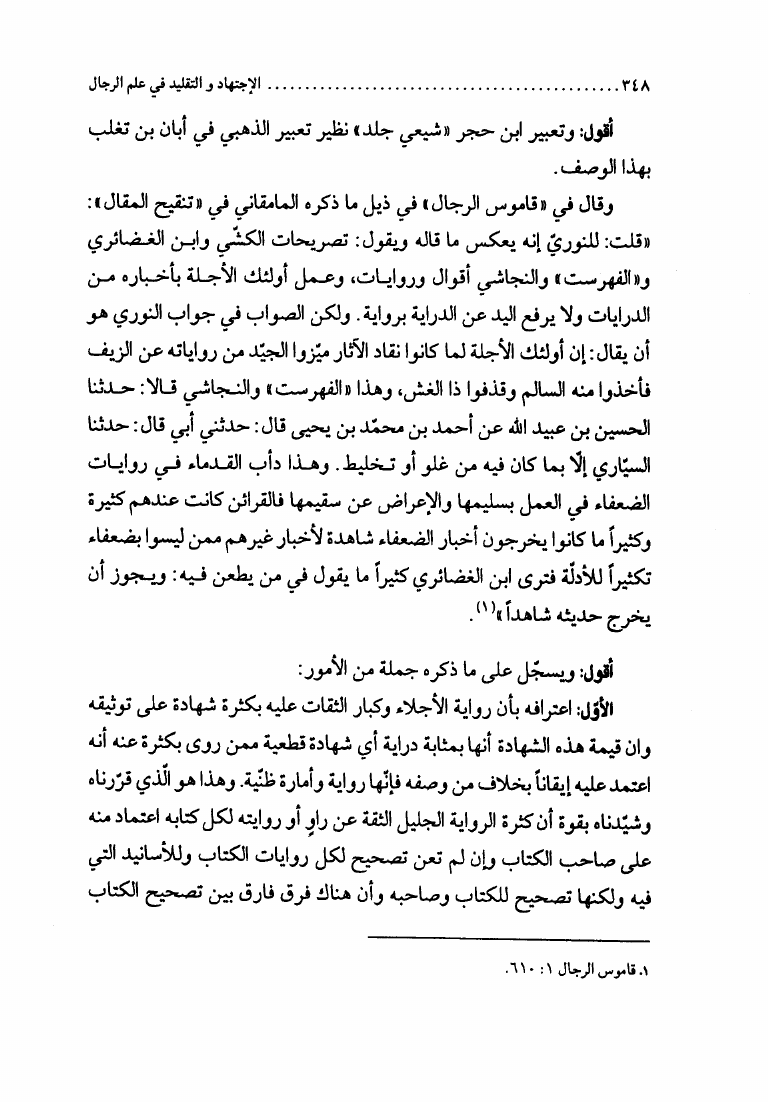 نام کتاب : الإجتهاد والتقليد في علم الرجال، وأثره في التراث العقائدي، دراسة نقدية لمدرسة النجاشي نویسنده : الشيخ محمد السند البحراني جلد : 1 صفحه : 348