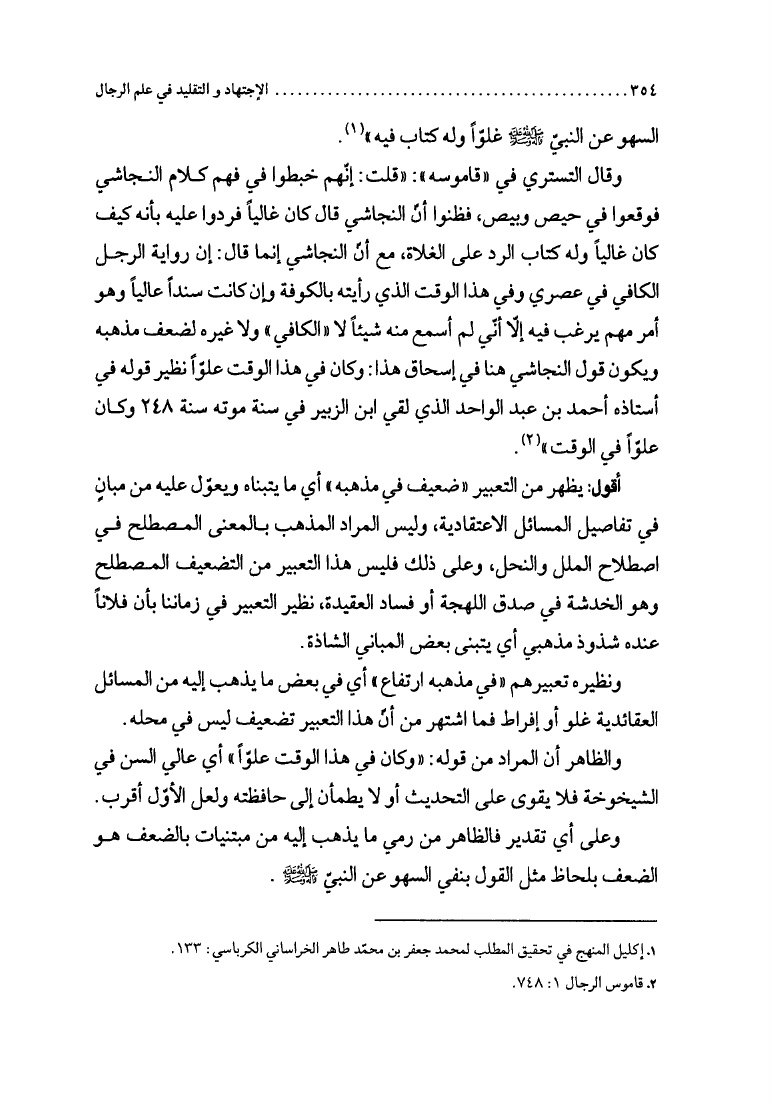 نام کتاب : الإجتهاد والتقليد في علم الرجال، وأثره في التراث العقائدي، دراسة نقدية لمدرسة النجاشي نویسنده : الشيخ محمد السند البحراني جلد : 1 صفحه : 354