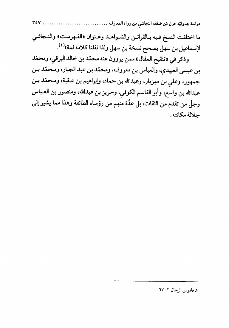 نام کتاب : الإجتهاد والتقليد في علم الرجال، وأثره في التراث العقائدي، دراسة نقدية لمدرسة النجاشي نویسنده : الشيخ محمد السند البحراني جلد : 1 صفحه : 357
