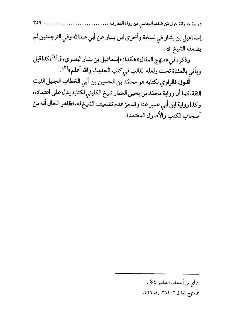 نام کتاب : الإجتهاد والتقليد في علم الرجال، وأثره في التراث العقائدي، دراسة نقدية لمدرسة النجاشي نویسنده : الشيخ محمد السند البحراني جلد : 1 صفحه : 359