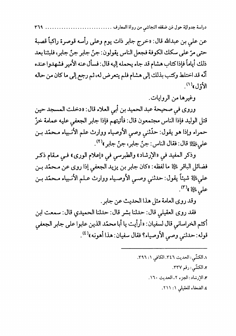 نام کتاب : الإجتهاد والتقليد في علم الرجال، وأثره في التراث العقائدي، دراسة نقدية لمدرسة النجاشي نویسنده : الشيخ محمد السند البحراني جلد : 1 صفحه : 369