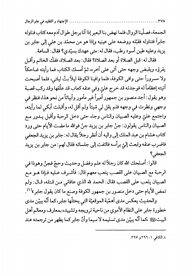 نام کتاب : الإجتهاد والتقليد في علم الرجال، وأثره في التراث العقائدي، دراسة نقدية لمدرسة النجاشي نویسنده : الشيخ محمد السند البحراني جلد : 1 صفحه : 378