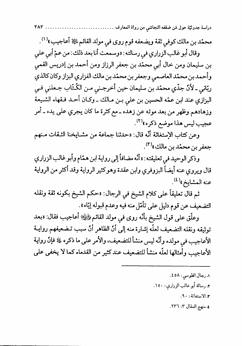 نام کتاب : الإجتهاد والتقليد في علم الرجال، وأثره في التراث العقائدي، دراسة نقدية لمدرسة النجاشي نویسنده : الشيخ محمد السند البحراني جلد : 1 صفحه : 383
