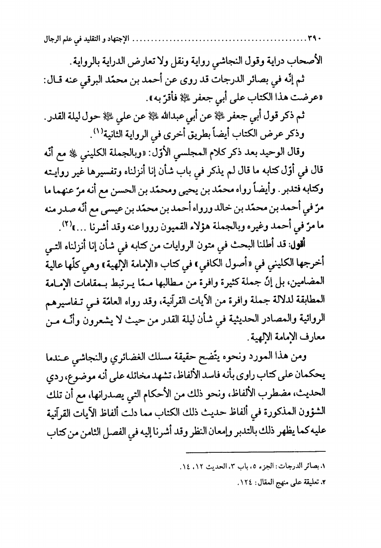 نام کتاب : الإجتهاد والتقليد في علم الرجال، وأثره في التراث العقائدي، دراسة نقدية لمدرسة النجاشي نویسنده : الشيخ محمد السند البحراني جلد : 1 صفحه : 390