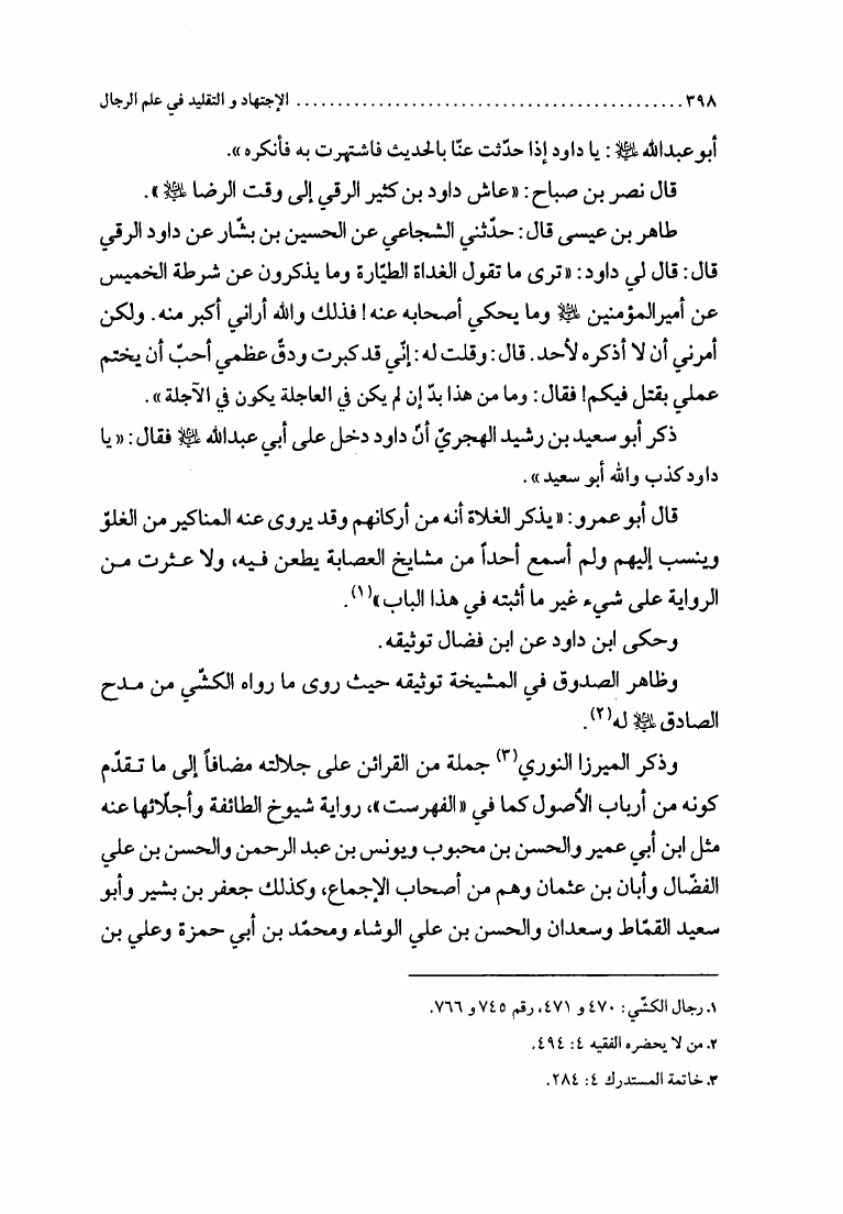 نام کتاب : الإجتهاد والتقليد في علم الرجال، وأثره في التراث العقائدي، دراسة نقدية لمدرسة النجاشي نویسنده : الشيخ محمد السند البحراني جلد : 1 صفحه : 398