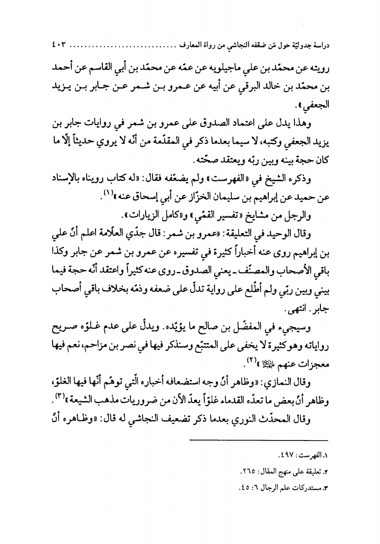 نام کتاب : الإجتهاد والتقليد في علم الرجال، وأثره في التراث العقائدي، دراسة نقدية لمدرسة النجاشي نویسنده : الشيخ محمد السند البحراني جلد : 1 صفحه : 403