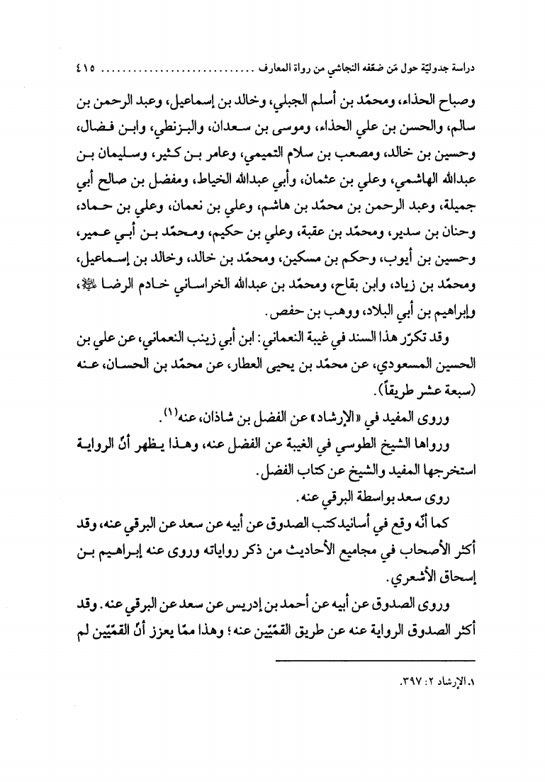 نام کتاب : الإجتهاد والتقليد في علم الرجال، وأثره في التراث العقائدي، دراسة نقدية لمدرسة النجاشي نویسنده : الشيخ محمد السند البحراني جلد : 1 صفحه : 415