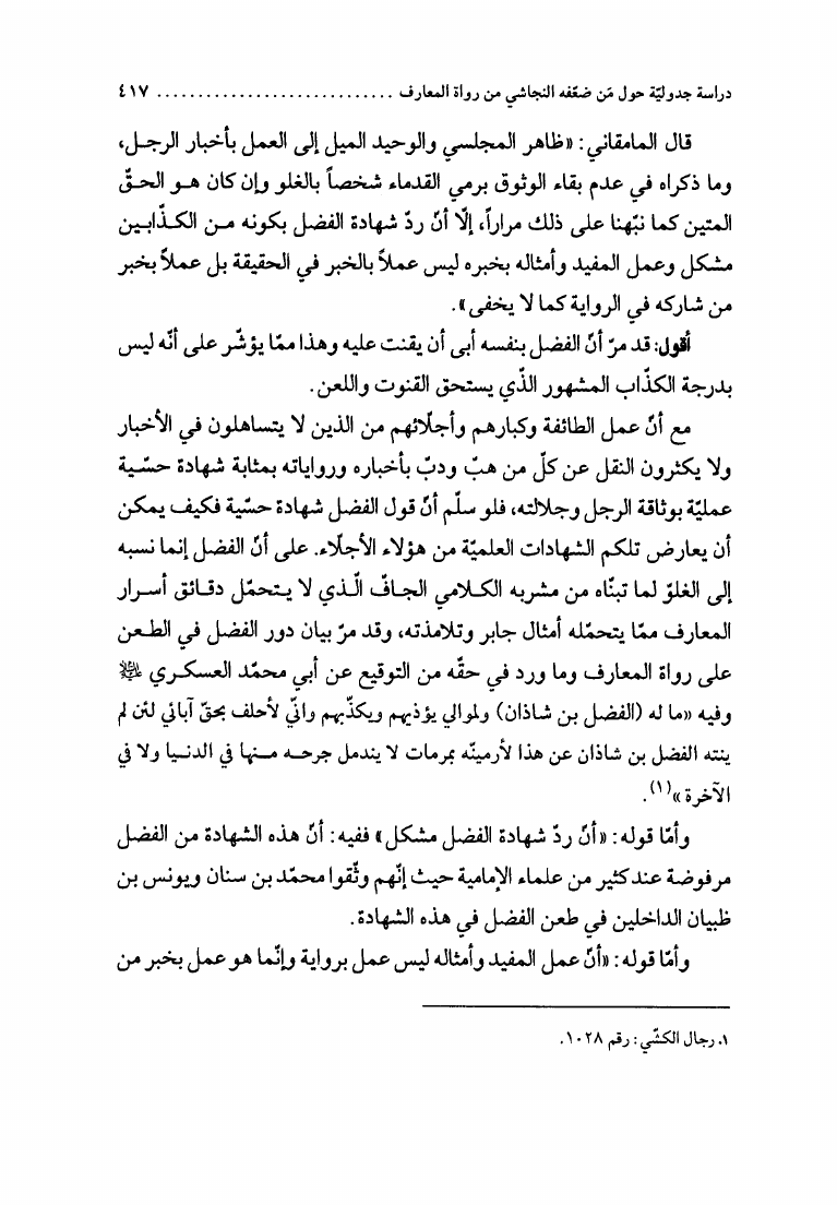 نام کتاب : الإجتهاد والتقليد في علم الرجال، وأثره في التراث العقائدي، دراسة نقدية لمدرسة النجاشي نویسنده : الشيخ محمد السند البحراني جلد : 1 صفحه : 417