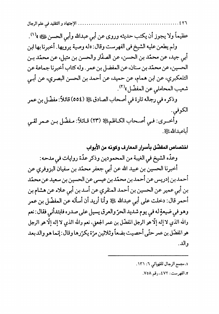 نام کتاب : الإجتهاد والتقليد في علم الرجال، وأثره في التراث العقائدي، دراسة نقدية لمدرسة النجاشي نویسنده : الشيخ محمد السند البحراني جلد : 1 صفحه : 426
