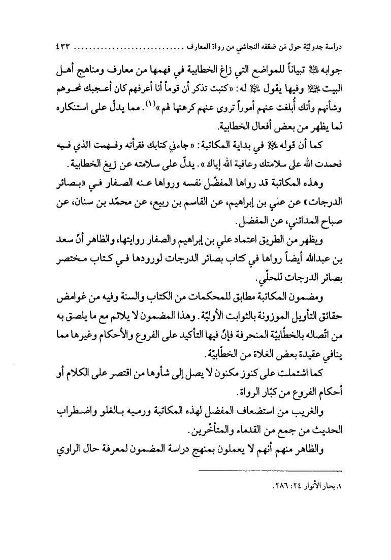 نام کتاب : الإجتهاد والتقليد في علم الرجال، وأثره في التراث العقائدي، دراسة نقدية لمدرسة النجاشي نویسنده : الشيخ محمد السند البحراني جلد : 1 صفحه : 433