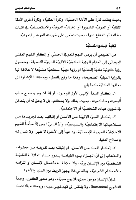 معالم النظام السياسي ، الفلسفي ، الإسلامي ، العلماني
