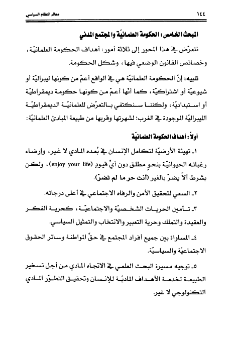 معالم النظام السياسي ، الفلسفي ، الإسلامي ، العلماني