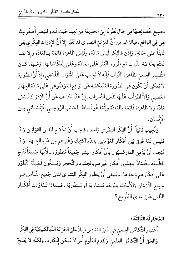 مطارحات في الفكر المادي والفكر الديني