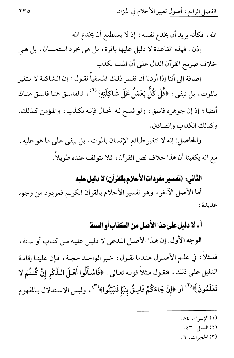 نام کتاب : فقه الرؤى ، دراسة فقهية وأصولية في عدم حجية الأحلام على ضوء الكتاب والسنة والعقل والعلم نویسنده : السيد مرتضى الحسيني الشيرازي جلد : 1 صفحه : 235