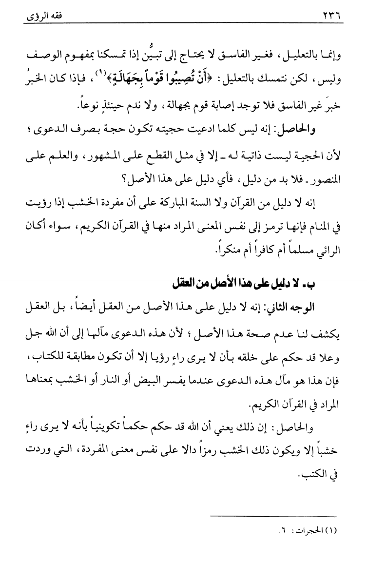 نام کتاب : فقه الرؤى ، دراسة فقهية وأصولية في عدم حجية الأحلام على ضوء الكتاب والسنة والعقل والعلم نویسنده : السيد مرتضى الحسيني الشيرازي جلد : 1 صفحه : 236