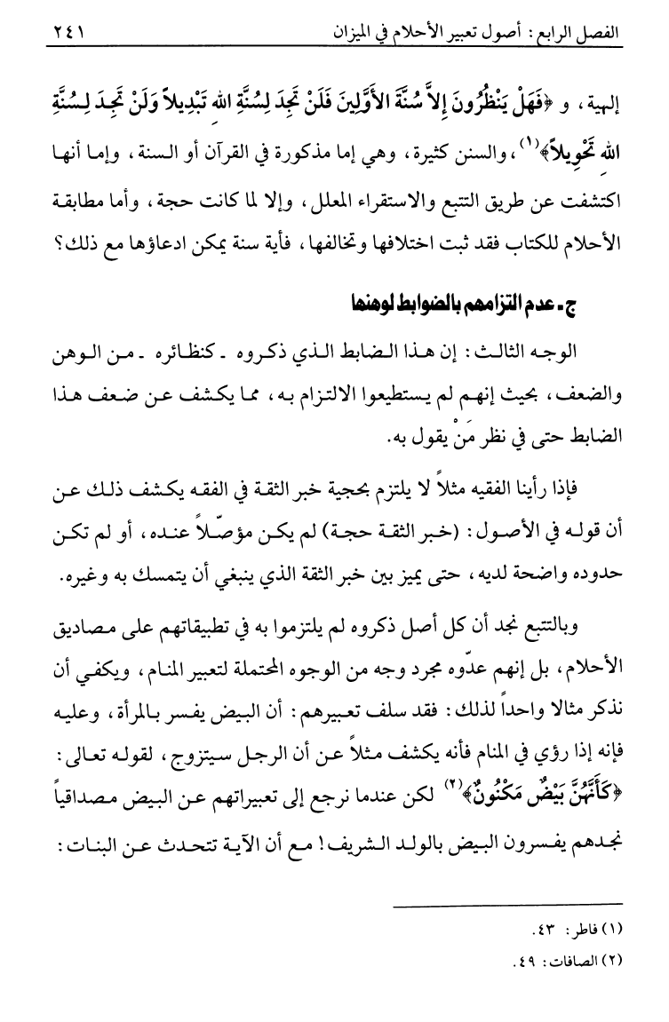 نام کتاب : فقه الرؤى ، دراسة فقهية وأصولية في عدم حجية الأحلام على ضوء الكتاب والسنة والعقل والعلم نویسنده : السيد مرتضى الحسيني الشيرازي جلد : 1 صفحه : 241