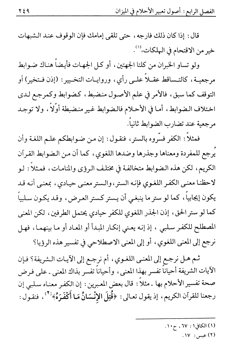 نام کتاب : فقه الرؤى ، دراسة فقهية وأصولية في عدم حجية الأحلام على ضوء الكتاب والسنة والعقل والعلم نویسنده : السيد مرتضى الحسيني الشيرازي جلد : 1 صفحه : 249