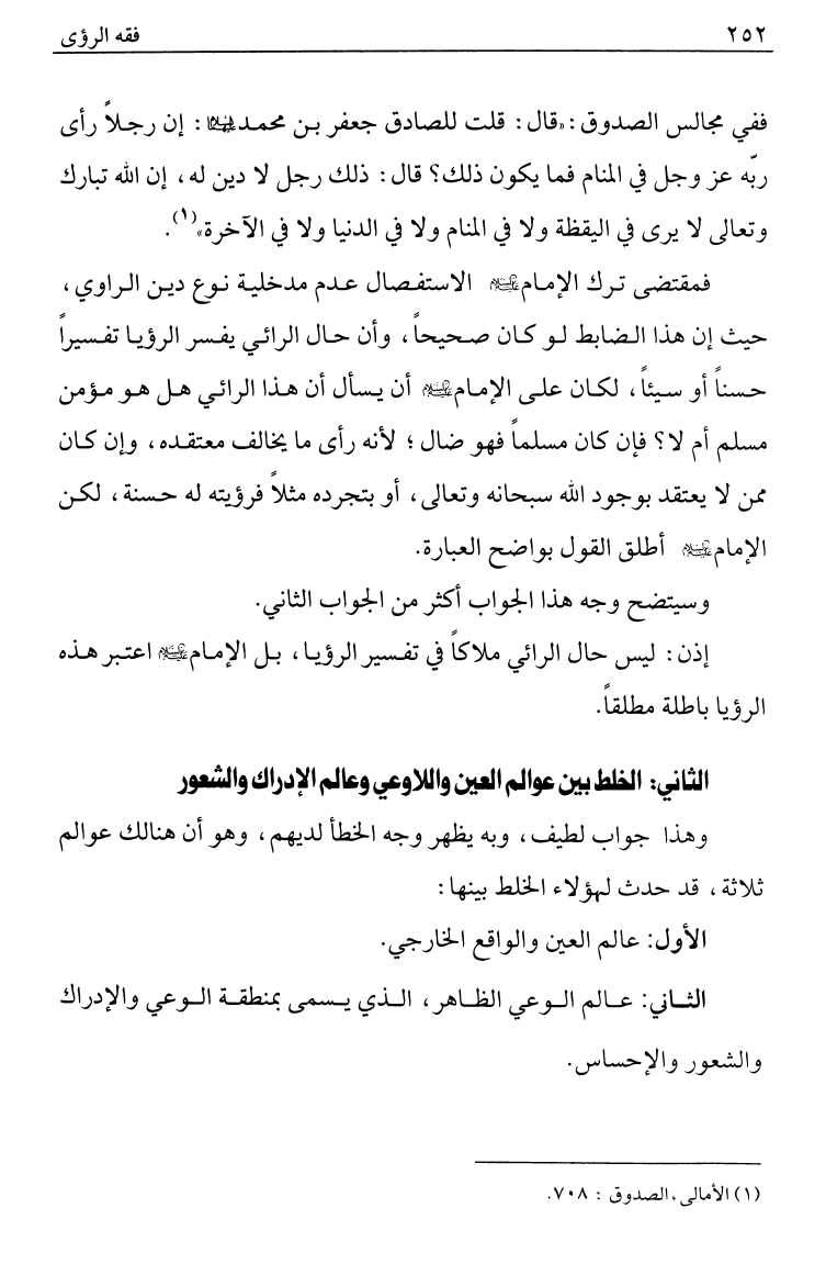 نام کتاب : فقه الرؤى ، دراسة فقهية وأصولية في عدم حجية الأحلام على ضوء الكتاب والسنة والعقل والعلم نویسنده : السيد مرتضى الحسيني الشيرازي جلد : 1 صفحه : 252